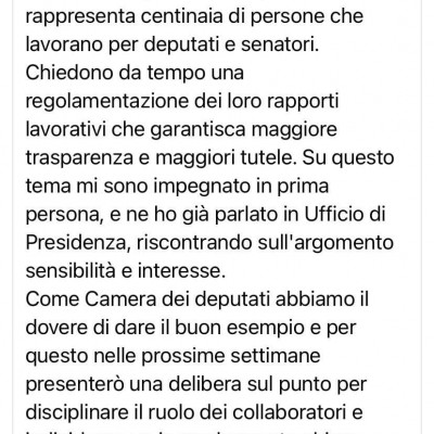 Il 18 luglio 2019, esattamente tre anni fa, il presidente della Camera Roberto Fico, si impegnava pubblicamente a risolvere quella che è una grave anomalia del Parlamento italiano: la totale assenza di regole nell'instaurazione dei rapporti di lavoro...