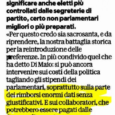 L'esito referendario favorevole alla riduzione dei parlamentari deve essere l'occasione per rafforzare le prerogative e le possibilita' di azione di deputati e senatori