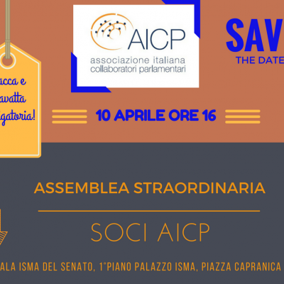 SAVE THE DATE! Assemblea straordinaria e ordinaria dei Soci AICP lunedì 10 Aprile alle ore 16:00È molto importante esserci, i soci che proprio non po...