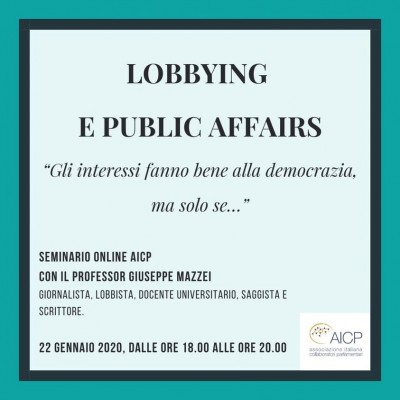 Il seminario gratuito riservato agli iscritti #Aicp, in materia di Attività di #Lobbying e #PublicAffairs, intitolato "Gli interessi fanno bene alla democrazia, ma solo se..." si terrà venerdì 22 gennaio, dalle ore 18.00 alle 20.00 Interverrà il pr...