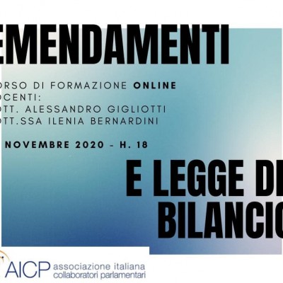 Seminario AICP del 20 novembre 2020 h.18.00 dedicato Legge di bilancio, con focus su: esame - regole di emendabilità - individuazione delle coperture finanziarie- esempi pratici