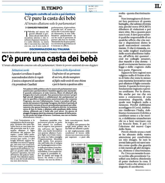Roma, 6 dic. (askanews) - "Esprimiamo solidarietà nei confronti della collega Alessandra, collaboratrice parlamentare del senatore Gianluigi Paragone, alla quale è stata negata la possibilità di allattare il figlio nelle stanze di Palazzo Madama." E' quanto dichiara in una nota il direttivo dell' Associazione Italiana dei Collaboratori Parlamentari (AICP), in relazione alla denuncia del senatore Paragone ripresa oggi da Il Tempo. "Quella descritta - proseguono - è solo la punta di un iceberg. Come lamentiamo da molti anni, la totale assenza di un adeguato quadro giuridico che riconosca, disciplini e tuteli la figura professionale del collaboratore parlamentare determina la violazione dei più elementari principi stabiliti in materia di diritto del lavoro, penalizza la valorizzazione delle competenze, e, non da ultimo, arreca discredito alla reputazione dell'Istituzione parlamentare. Il paradosso è che proprio nel luogo in cui vengono approvate leggi in difesa dei lavoratori, molte collaboratrici e collaboratori di senatori e deputati non hanno diritto a ferie, malattie e maternità. Anche questa legislatura sta volgendo al termine, il che rende non più procrastinabile il passaggio giuridico che si richiede per conferire dignità lavorativa a coloro che, con competenza e correttezza, coadiuvano i parlamentari nello svolgimento delle funzioni legate all'esercizio del mandato." Concludono i collaboratori parlamentari.