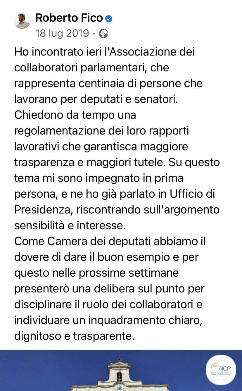 Ancora nessuna delibera su regole nei rapporti di lavoro Roma, 18 lug. (askanews) - "Il 18 luglio 2019, esattamente tre anni fa, il presidente della Camera Roberto Fico, dopo un incontro con i referenti dell'Associazione Italiana Collaboratori Parlamentari (AICP), si impegnava pubblicamente a risolvere quella che è una grave anomalia del Parlamento italiano: la totale assenza di regole nell'instaurazione dei rapporti di lavoro tra collaboratori parlamentari ed eletti". Lo afferma José De Falco, presidente di AICP. "Tre anni fa Fico - continua De Falco - scriveva pubblicamente: 'Come Camera dei deputati abbiamo il dovere di dare il buon esempio e per questo nelle prossime settimane presenterò una delibera sul punto per disciplinare il ruolo dei collaboratori ed individuare un inquadramento chiaro, dignitoso e trasparente'". "Venerdì prossimo alla Camera si discuterà sul bilancio interno - continua il presidente di AICP - senza che uno straccio di delibera sia mai stata non solo adottata, ma quantomeno discussa dall'Ufficio di Presidenza o condivisa con l'AICP. L'impegno ad oggi disatteso dal presidente Fico può - e soprattutto deve - essere realizzato prima che la legislatura volga al termine. E' necessario però - conclude De Falco - che le Camere e gli stessi parlamentari onorino gli impegni assunti in questi anni introducendo una specifica disciplina - come esiste nel Parlamento europeo - la cui assenza infligge un grave danno ai diritti dei lavoratori e all'immagine dell'Istituzione parlamentare".