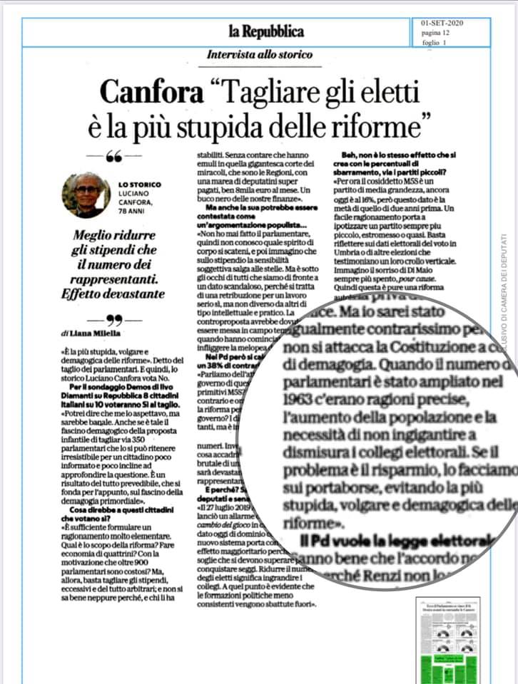 "Non ne facciamo una colpa - ha aggiunto De Falco - al prof. Canfora, per evidente ignoranza del tema, di prendersela con del personale che per mancanza di tutele e risibilità delle risorse destinate non ha uguali nei parlamenti d'Europa e che da anni lotta vedersi riconosciuta una dignità professionale". "Quel che stupisce - ha concluso il presidente dell'AICP - per un acuto pensatore come il prof. Canfora, è il non essere consapevole di come staff professionali in grado di assistere deputati e senatori, per garantire che il mandato parlamentare sia adeguatamente esercitato, dalle funzioni legislative alle attività di indirizzo e controllo del governo, sia essenziale al buon funzionamento dell'istituzione parlamentare, qualunque sia il numero dei suoi membri".