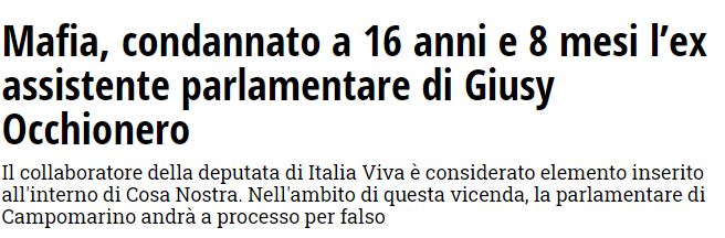 «Come riportato da fonti di stampa mai smentite, dalle indagini sarebbe emerso che la deputata Occhionero avrebbe depositato alla Camera un contratto da 50 euro mensili, quale retribuzione da corrispondere al Nicosia. Non solo. La stampa sicialiana nel novembre 2019 ha riportato la risposta che l'onorevole Occhionero - sentita in veste di testimone - avrebbe dato ai PM. Alla domanda su come fosse possibile annoverare fra i collaboratori una persona come Nicosia, con alle spalle una condanna a 10 anni e mezzo per traffico di droga, Occhionero avrebbe risposto che alla Camera nessuno fa controlli del genere sui collaboratori».