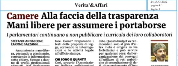Del resto chiunque ottenga un contratto di collaborazione a Palazzo Chigi o in qualche ministero, è sottoposto a un principio di pubblicità, che riguarda anche il compenso pattuito. In Parlamento, invece, si agisce senza rispondere ad alcun requisito di trasparenza.