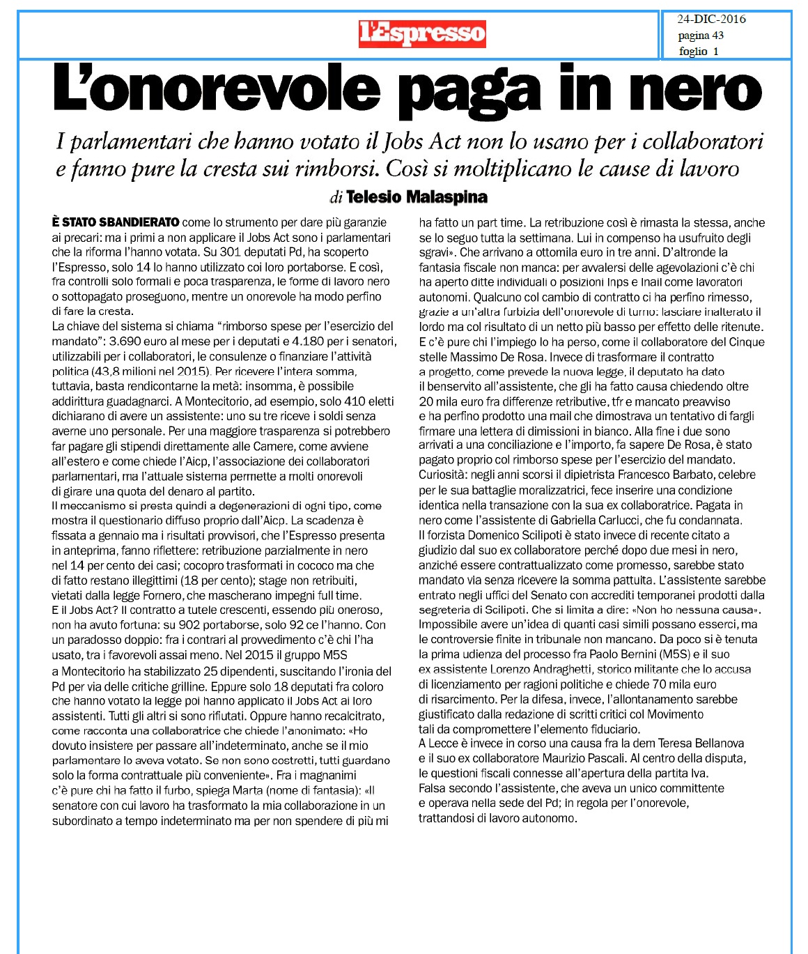 Ma i primi a non usare il contratto a tutele crescenti coi collaboratori sono proprio i parlamentari, che spesso preferiscono i cococo o direttamente metodi non legali.