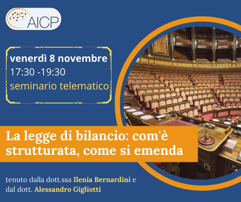 Tutti gli iscritti riceveranno il link per il collegamento nelle ore immediatamente precedenti. La partecipazione, come di consueto, è gratuita ed è riservata agli iscritti all'Associazione italiana collaboratori parlamentari (AICP).